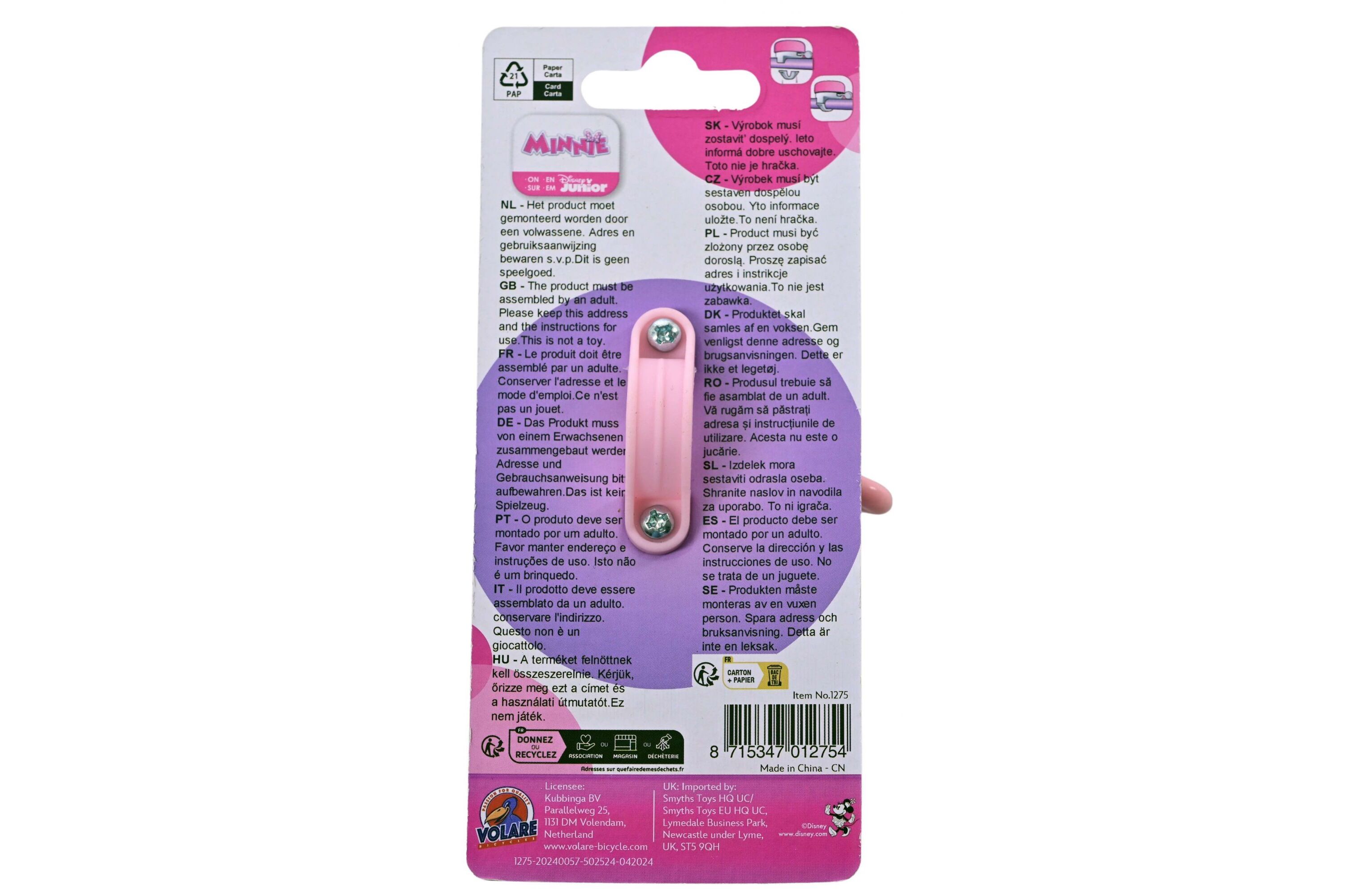 Zvonek pomáhá dětem bezpečně upozornit chodce i ostatní cyklisty. Díky hravému designu Minnie se zároveň stává stylovým doplňkem, který zpříjemní každou projížďku.