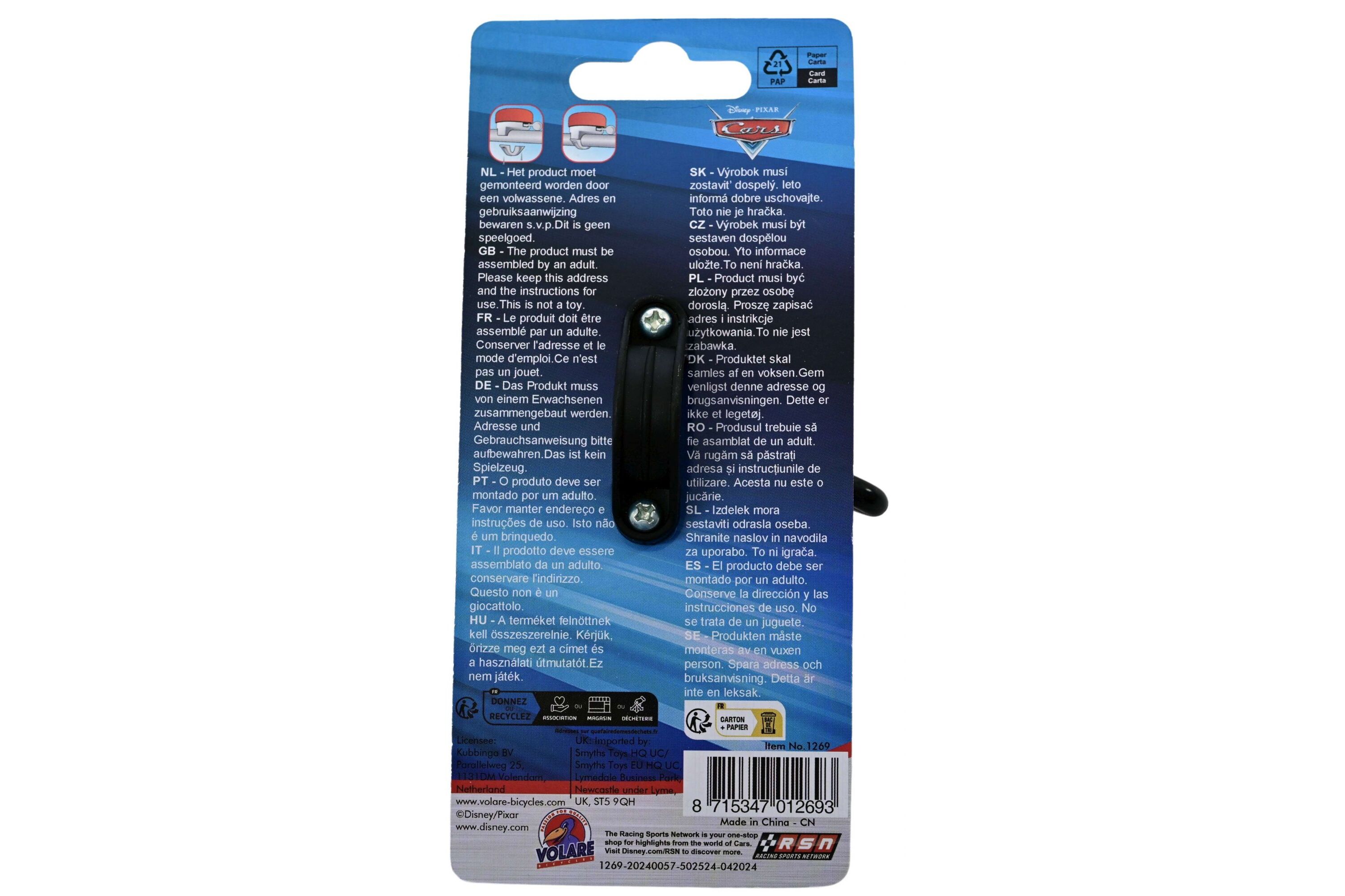 Zvonek pomáhá dětem bezpečně upozornit chodce i ostatní cyklisty. Díky atraktivnímu motivu Cars se zároveň stává stylovým doplňkem, který zpříjemní každou projížďku.